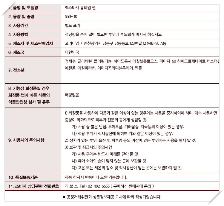제품명: 고려티엠 엑스타시 롱타임 젤